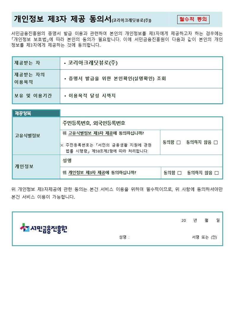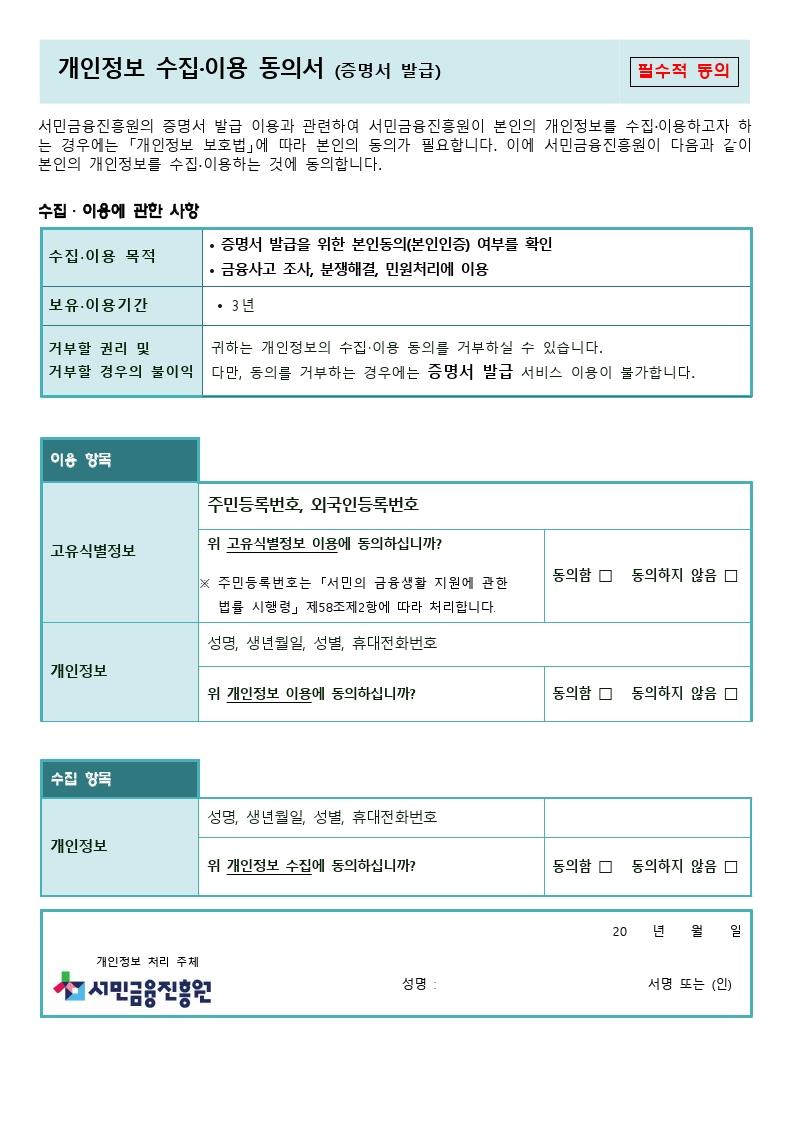 서민금융진흥원 대출·보증상품 이용자에 한하여 여러 증명서를 한 번에 조회 후 발급 받으실 수 있습니다.