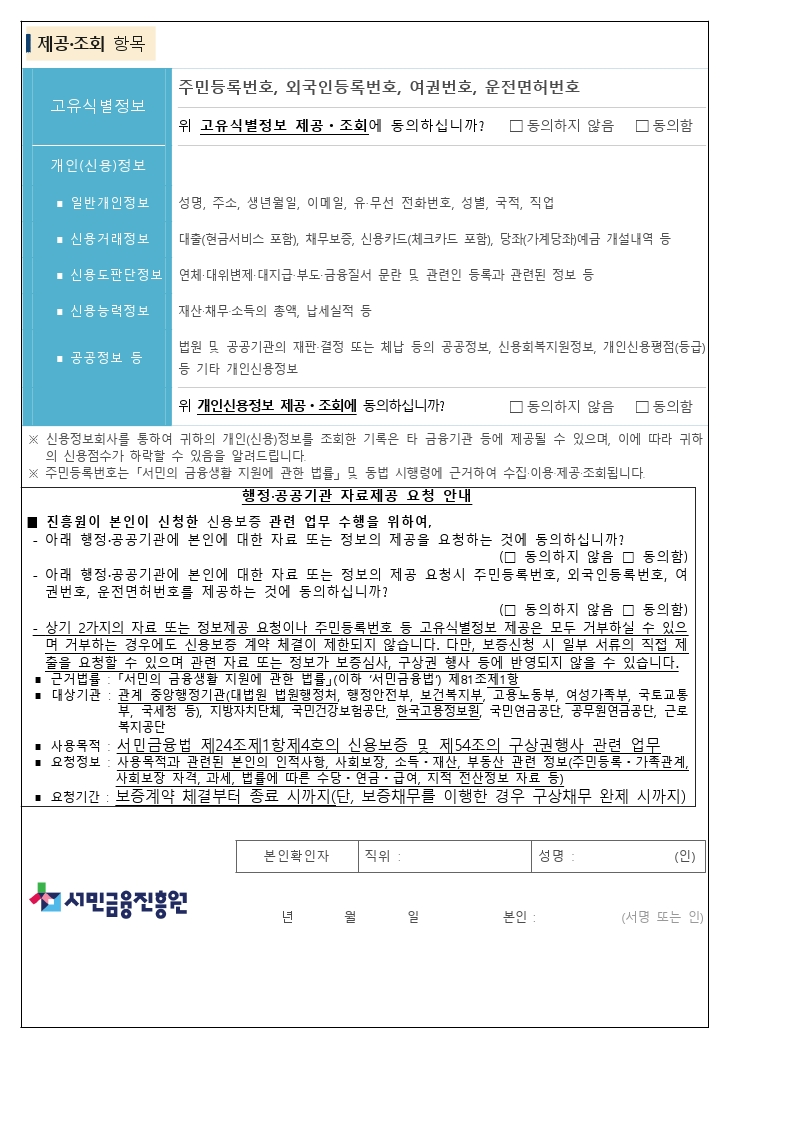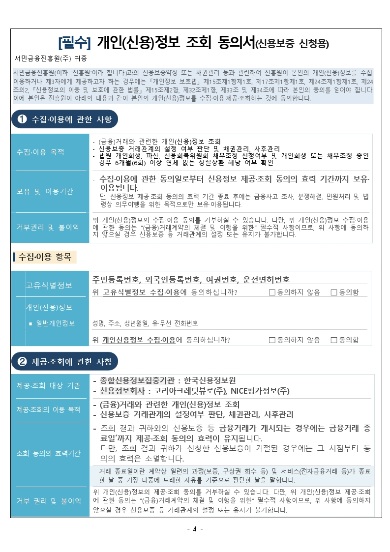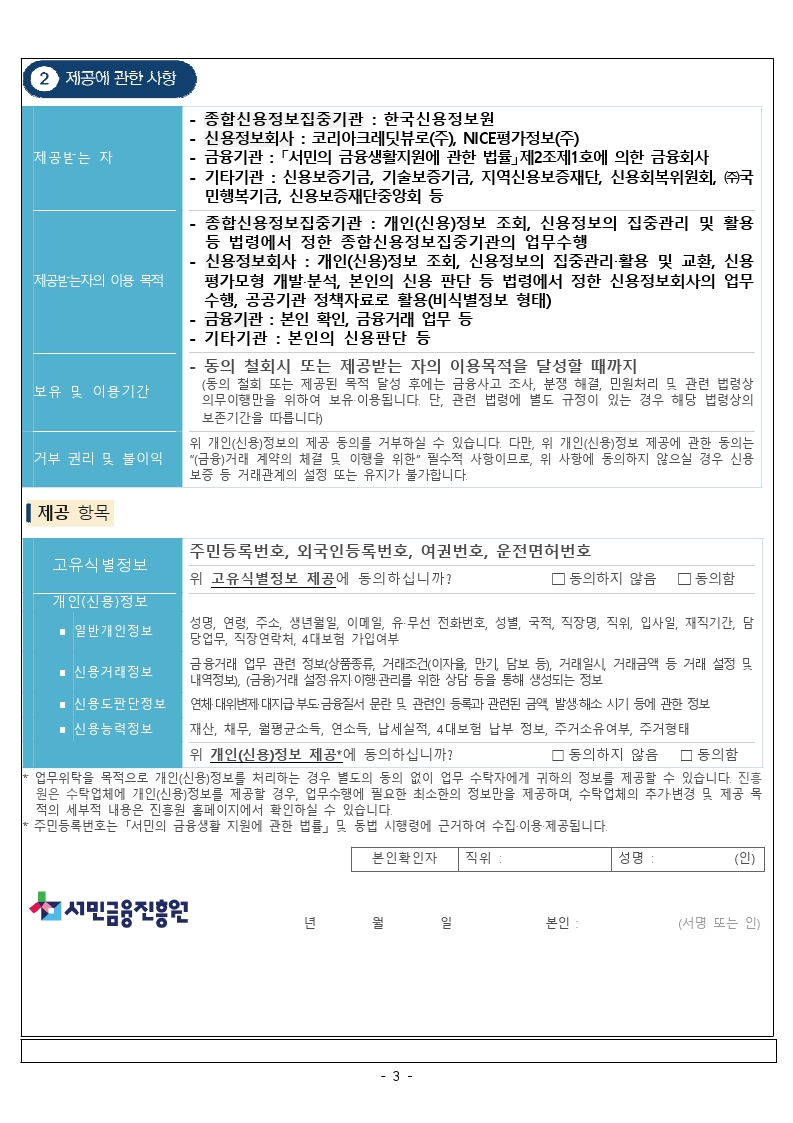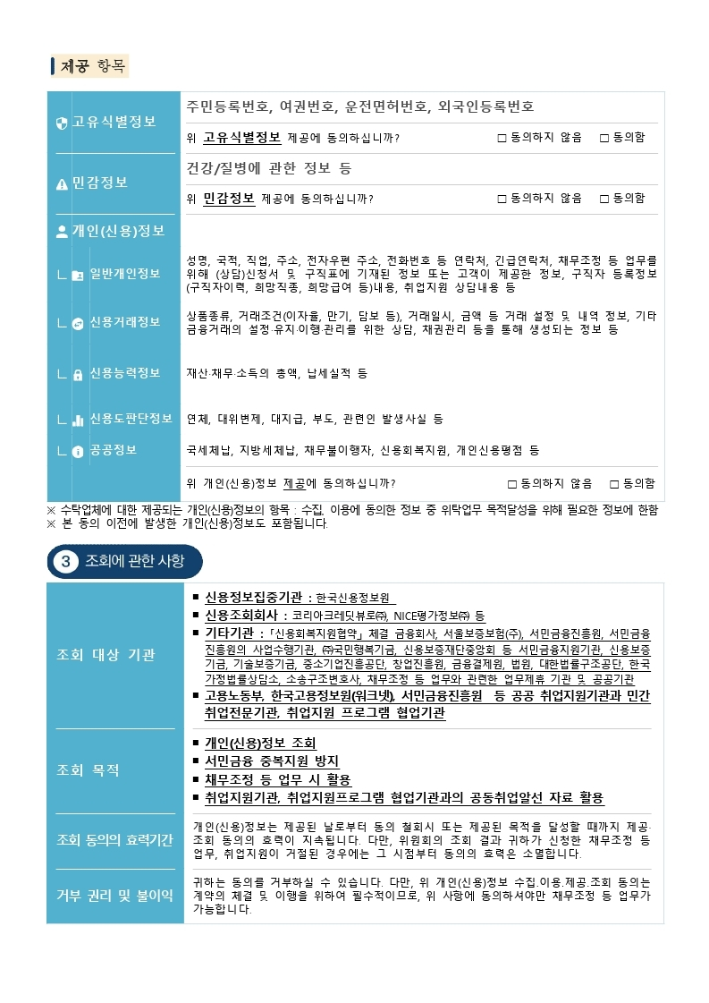 - 대출가능여부, 한도, 금리 등의 대출 조회결과와 대출실행은 각 개별 금융회사가 결정하며, 서민금융진흥원은 대출조회 결과에 대해 어떠한 판단 또는 결정을 하지 않습니다.