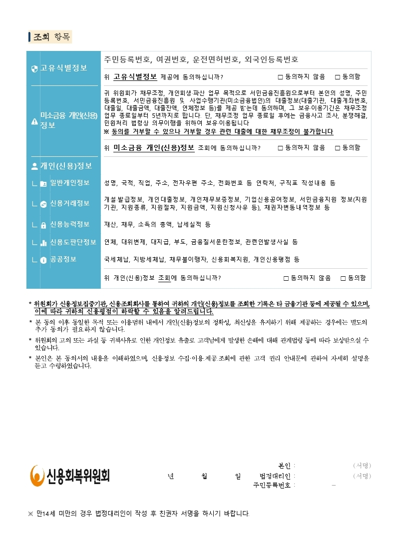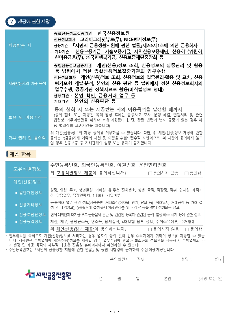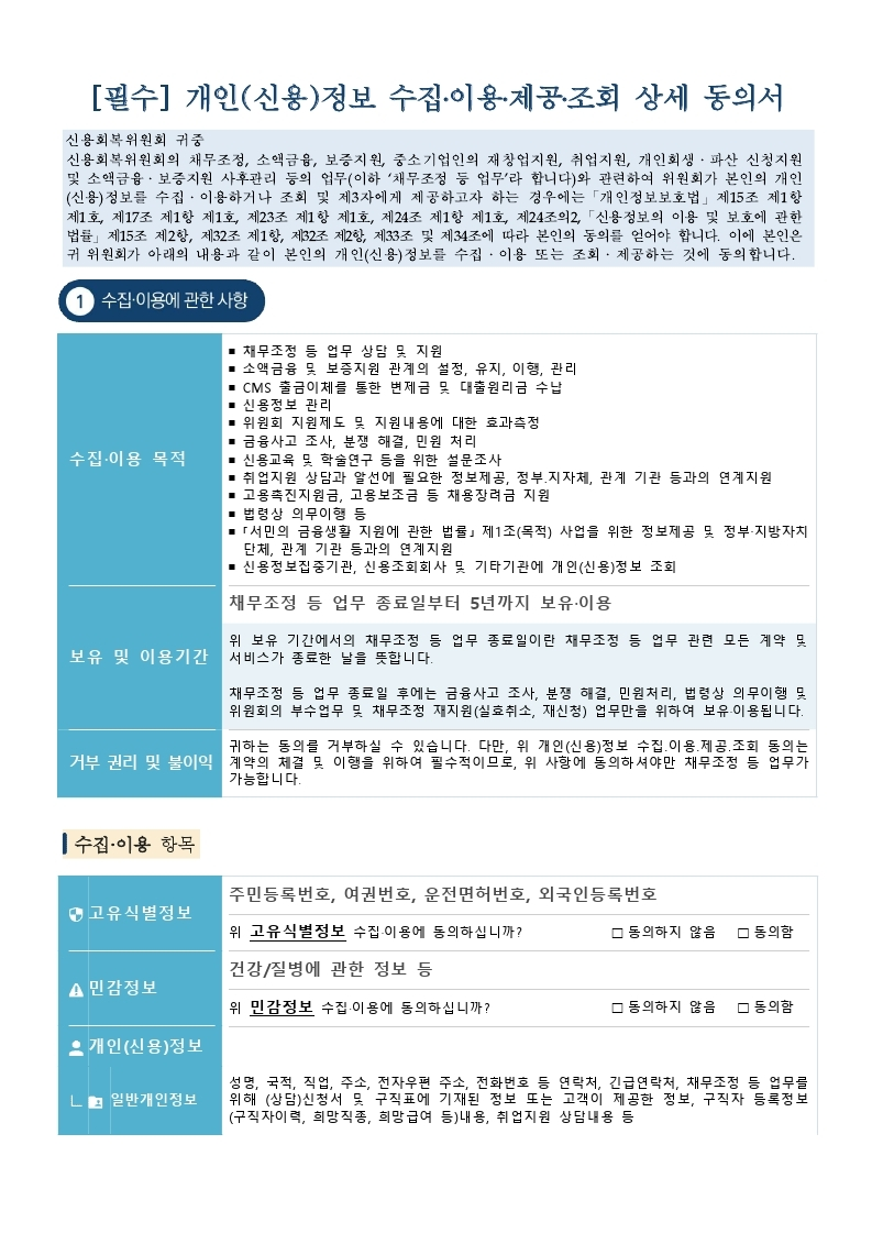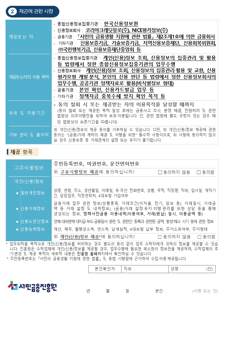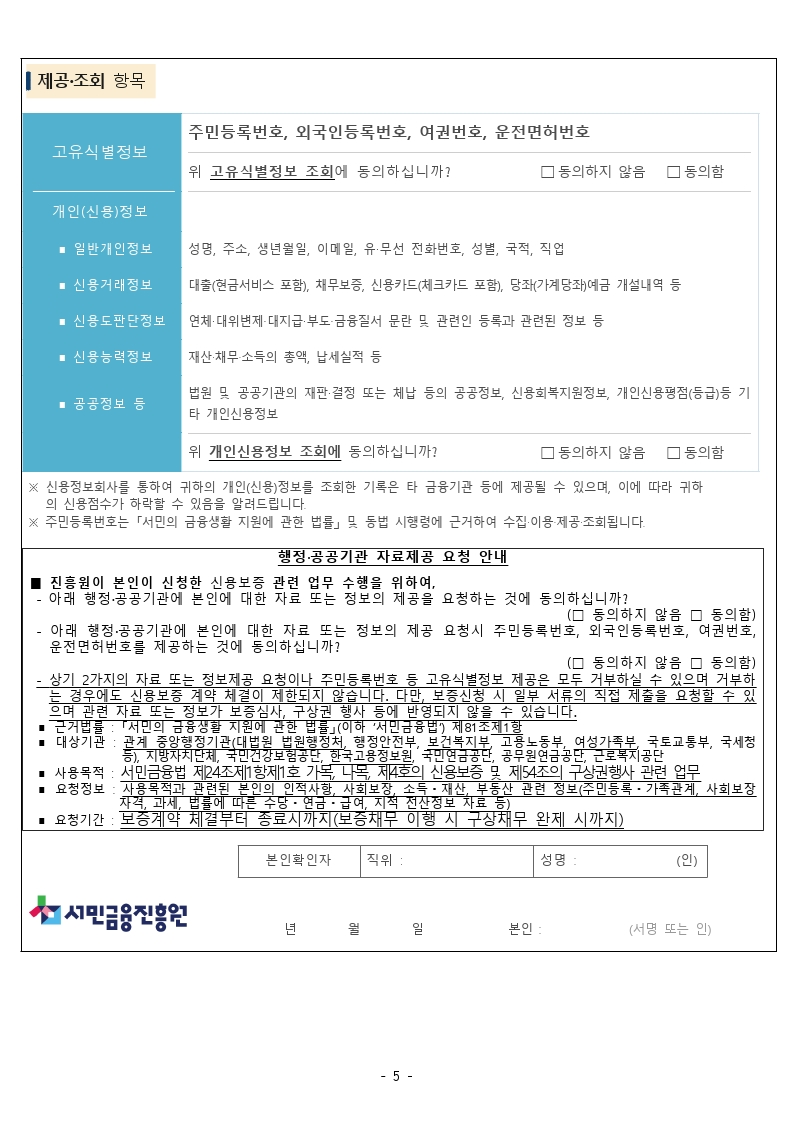 - 대출가능여부, 한도, 금리 등의 대출 조회결과와 대출실행은 각 개별 금융회사가 결정하며, 서민금융진흥원은 대출조회 결과에 대해 어떠한 판단 또는 결정을 하지 않습니다.