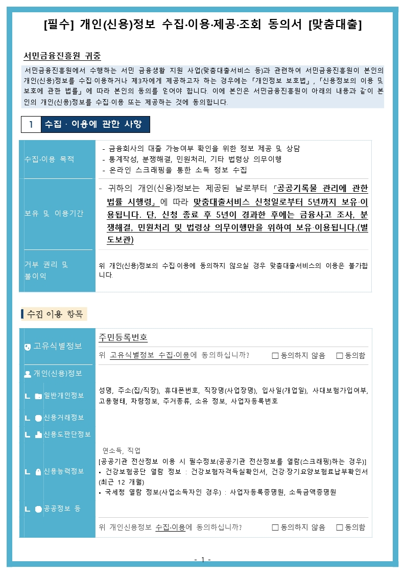 - 서민금융진흥원 맞춤대출서비스에서 가조회한 결과와 실제 대출심사 결과는 다를 수 있습니다.