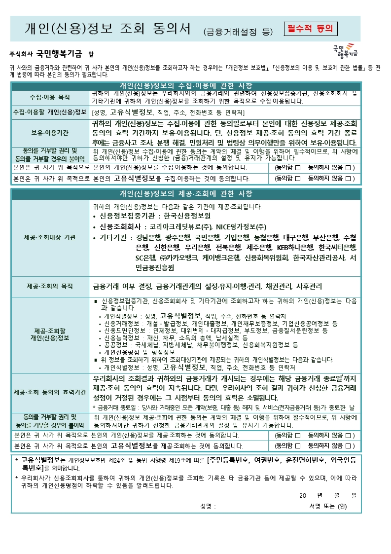 - 대출상품 가능여부 조회는 신용정보회사에 조회기록이 남을 수 있으나, 조회기록은 신용점수에 영향이 없습니다.